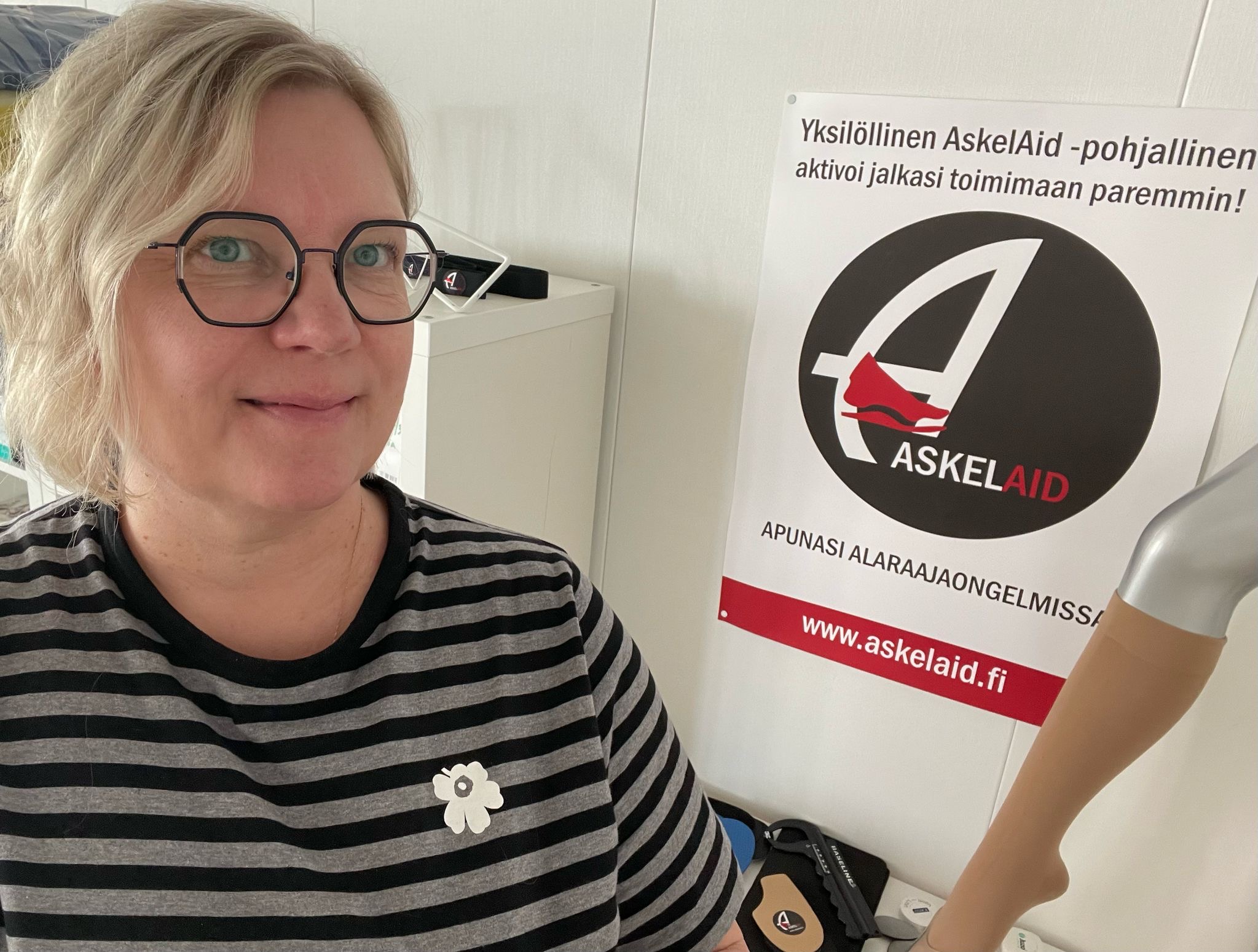 23.2.202623.2.2026Ajankohtaista, Yleinen Lohjalta AskelAid tukipohjalliset! Hei! Olen Pia Olin, fysio-, ja lymfaterapeutti Lohjalta. Olen toiminut pitkään tuki- ja liikuntaelinfysioterapia-asiakkaiden parissa omassa yrityksessäni, sekä hoitanut erilaisia turvotusongelmia lymfaterapian sekä kompressiotuotteiden avulla.